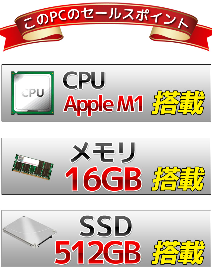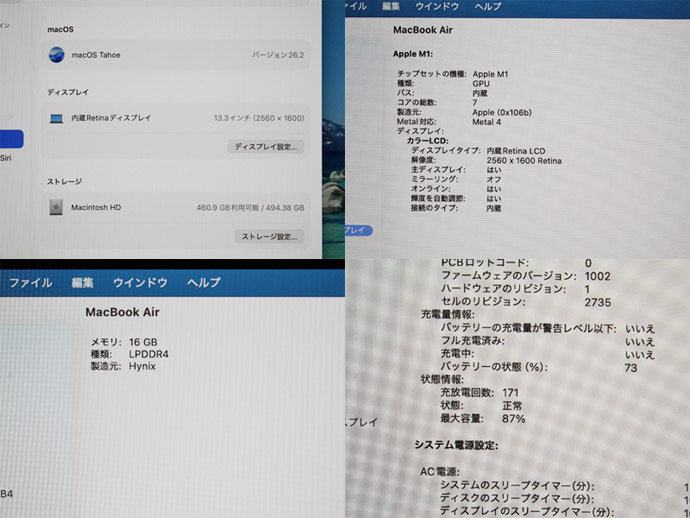 | 機種名 | Macbook Air 13-inch, M1 2020 MGN63J/AのCTOモデル スペースグレイ |