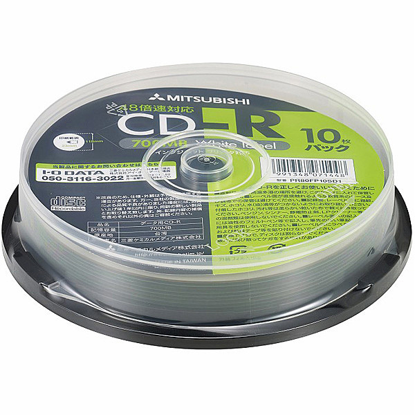 CD-R(Data) 1回記録用 700MB 48倍速 10枚スピンドルケース10P インクジェットプリンタ対応(ホワイト) ワイド印刷エリア対応 ノジマ様向け