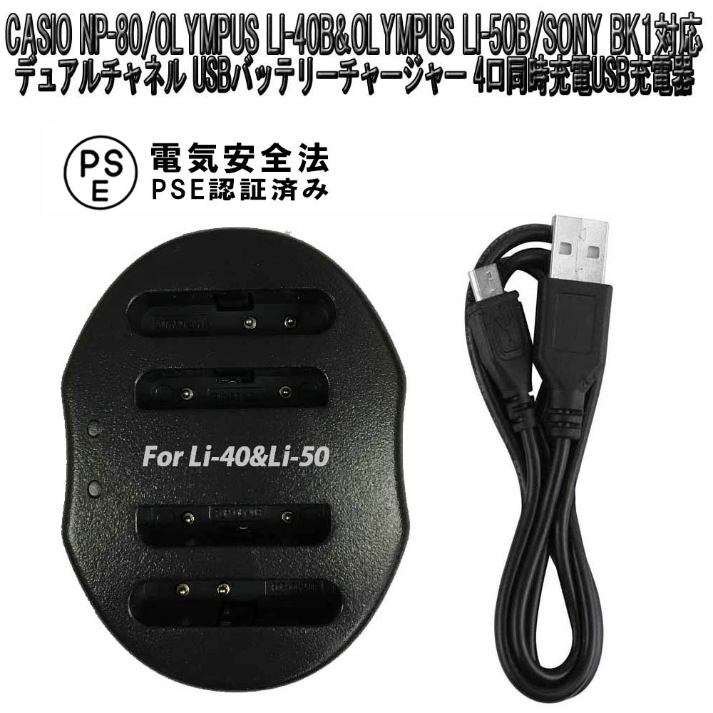 【送料無料】CASIO NP-80/OLYMPUS Li-40B&OLYMPUS Li-50B/SONY BK1対応デュアルチャネル USBバッテリーチャージャー 互換4個口同時充電可能USB充電器☆Exilim EX-G1 Exilim EX-S5☆Exilim EX-G1 Exilim EX-S5 | |