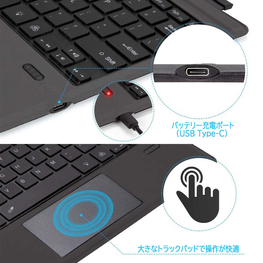 | 設定方法 | キーボードを準備 1:Bluetoothキーボードを充電し、Bluetoothキーボード電源を入れます。 注:電源ランプが点滅または付かない場合は一度充電してからご利用くださいませ。 2:タブレット本体側:設定→一般→Bluetooth機能をONにします 3:BluetoothキーボードFnキー+Zキーを数回押します。(LEDを点滅させる) 4:タブレット検索した対応当キーボードの項目をタッチし、ペアリング要求項目が表示され、その項目をタップして、接続済みデバイスに表示されれば、設定完了。 ※重要:Surface純正キーボードの接続仕組み及び接続方法が異なりますので、ご注意くださいませ。 ※バックライト点灯仕様に関しましてキーボードを5-10秒操作されない場合はバックライト消灯されます。 |