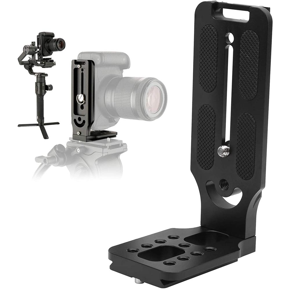 | カメラLブラケット クイックリリースプレート アルミ合金 垂直撮影QRプレートブラックカメラL字型ブラケット、三脚、スタビライザーに対応 |