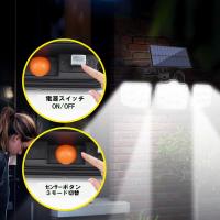 | 商品説明 | ■最新版3面発光・300°照明・122SMD高輝度ソーラーライト 3面発光デザインのソーラーライトで照明角度は300°と広く、両側のライトは上下左右に回転することができます。ソーラーパネルの部分は上下左右160°の角度に調節でき太陽の良く当たる方へ向けて十分に充電できます。センサー検知角度は120°と広く、防犯や緊急時の対策にも大活躍です。 ■リモコン付き&3つの点灯モード リモコン付きなので、様々な使用シーンに合わせてモードを調整でき、とても便利です。常時点灯モード、DIMモード、自動点灯センサーモード三つの知能モードがが搭載されています。人の動きを検知して自動的に点灯するセンサーモードを一番お勧めです。感知設定装置が約3-5メートル以内の人や動物の動きを感知すると、自動点灯します。 ■改良版分離型&約5m延長コード付き ソーラーパネルとLEDライト本体が分離可能で、5mぐらいケーブルで繋がって、日陰でご利用の場合は、パネルを日当たりの良い場所に設置し、ライトだけを日陰に設置することで、日照不足を避えます。 ■コンパクト・IP65防水防塵 小型でコンパクトのデザインで簡単に取り付け可能です。また、IP65防水防塵でご家庭の玄関・門扉・軒先・庭・駐車場・ガレージなどや事務所・店舗・倉庫・工場などの出入り口など様々な場所に最適です。 |