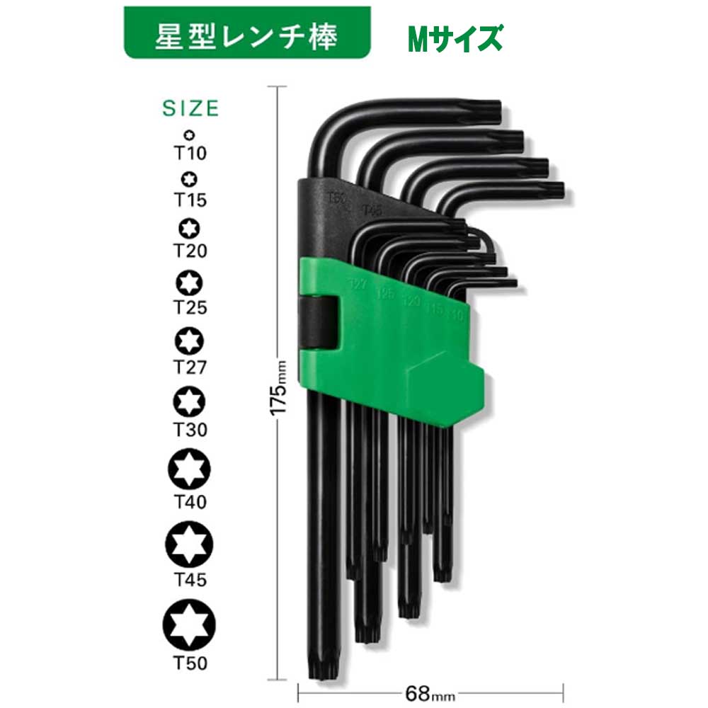 | 【星型レンチ9本組:サイズM 】締め付け用 T10・T15・T20・T25・T27・T30・T40・T45・T50 9本セット 狭い所や斜めでも使用可能 DIY 工具 送料無料 | |
