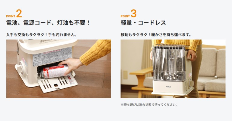 おすすめ 暖房 効果 コードレス 電源不要 レビュー 比較 木造5畳 安全装置 暖房器具 災害用 軽