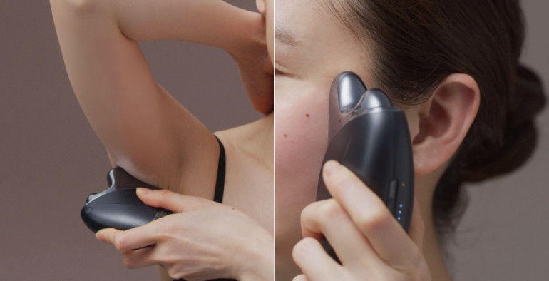 EMS電極のあてやすさを科学。気になる部分を狙いやすく、引き上げるように使えるかっさ形状。