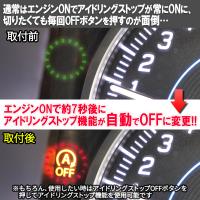 ■機能説明■ ・製品を取り付けてエンジン始動約7秒後、アイドリングストップ機能は自動でOFF(アイドリングストップ無し)になります。 ・一時的にON・OFFを切り替えたいときは、アイドリングストップボタンを押してON・OFFを切り替えて下さい。
