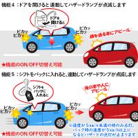 店長からのメッセージ HONDA 令和発売の新型N-WGN車に、車速ドアロック&ハザードシステムが登場しました!! 機能1:シフトレバーを「D」に入れる、または時速15km/h前後で自動的にロックがかかります。機能の切替設定あり 機能2:停止後、シフトの「P」に入れる、またはエンジンを切るとドアロックが自動で解除されます!機能の切替設定あり 機能3:非常時には、ドアロック解除!およそ40km/h以上の減速時に作動し非常事態の脱出時に閉じ込められる危険を回避します。 機能4:ドアを開けると自動でハザードランプが点滅!機能のON/OFF設定あり 機能5:シフトをバックに入れると自動でハザードランプが点滅!機能のON/OFF設定あり 接続する配線の先にカプラーが付いているので、難しい取り付けなどは一切ありません! 【対応車種】 【商品内容】