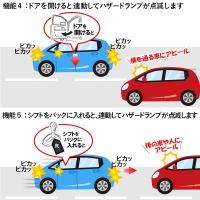 ・車の乗り降り時の接触や怪我は意外と多いんです。 この装置をつけていれば、ドアをあけると自動的にハザードランプが点滅し周囲へ注意喚起します。