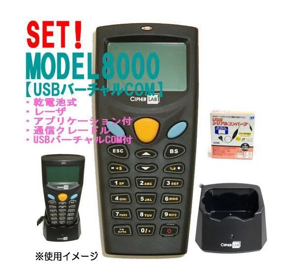 【ウェルコムデザイン】レーザーハンディターミナルセット8000L-02U-SET(乾電池2MBUSB)