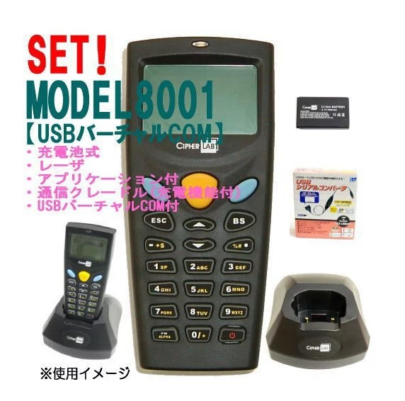 【ウェルコムデザイン】レーザーハンディターミナルセット8001L-02U-SET(充電池2MBUSB)