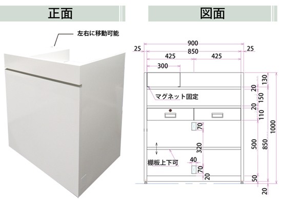 組立不要 国産スチール製 900幅POSカウンター BCT-POS900(受注生産品)