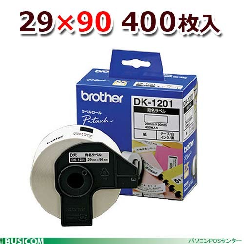 【ブラザー正規代理店】DK-1201 DKプレカットラベル宛名ラベル(感熱白テープ/黒字)29mm×90mm 400枚入り
