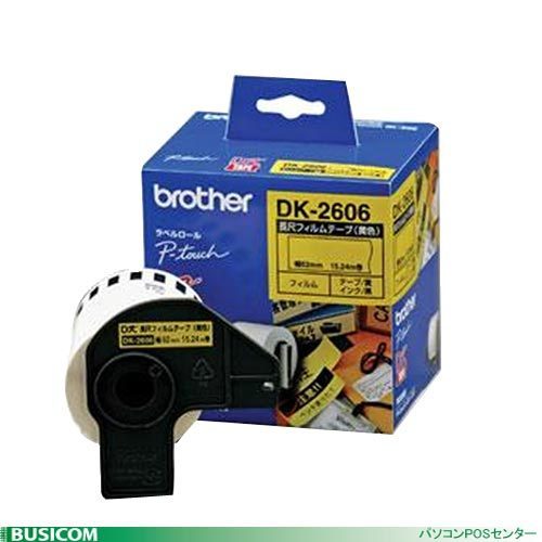 【ブラザー正規代理店】DK-2606 QLシリーズ用DKテープ 長尺紙テープ(感熱黄テープ/黒字) 幅62mm 15.24m巻き