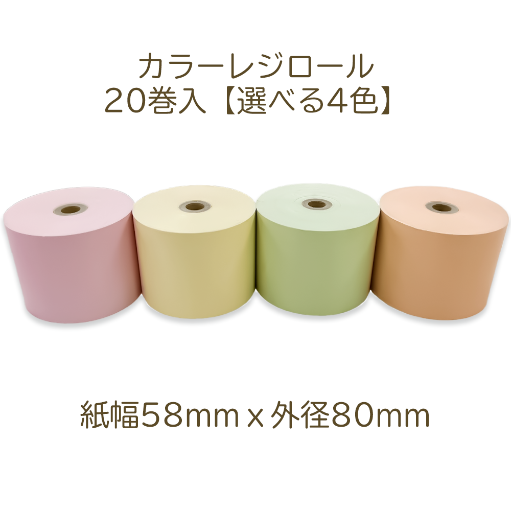 感熱ロール紙 感熱レジロール紙 感熱紙 駐車料金サービス券 カラーレジロール 58mm × 80mm × 12 (20巻入/ピンク・クリーム・みどり・オレンジ)