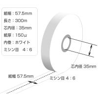 | 種別 | 感熱ロール紙(裏巻) 白 ミシン目6:4 |