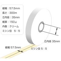 | 種別 | 感熱ロール紙(裏巻) クリーム ミシン目5:5 |
