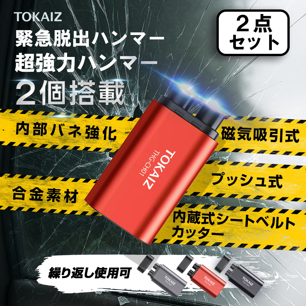 ・【超強力ハンマー2個】2つのハンマーだと、ガラスをより速く、より安定して砕くことができます。