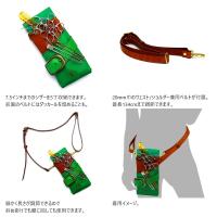革の魅力を100%生かしたデザイン。真鍮製のボリュームある金具や、太めのステッチづかいで、温かみの感じられる風合いを表現しました。前列にはシザー2丁、中央部にシザー3丁、後列にはコーム等を収納できる3列仕様。前面のベルトにはダッカールを留めることができます。またサイドと底面のホックを外すとフロント部分が大きく開くので、毛払いや掃除などを容易に行っていただくことができます。オイルをたっぷり含んだ柔らかな肌触りと、鮮やかな発色が魅力。シザー5丁対応。ウェスト/ショルダー兼用ベルト付き