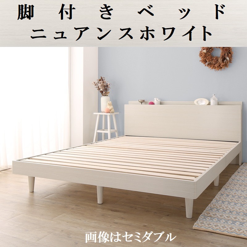 ダブルベッド フレームのみ 脚・棚・コンセント2個付 脚付きベッド すのこベッド ニュアンスホワイト 白