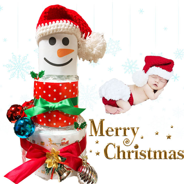 おむつケーキ クリスマス プレゼント ギフト 出産祝い 男の子 女の子 スノーマン サンタコスチューム オムツケーキ 出産祝 手作り