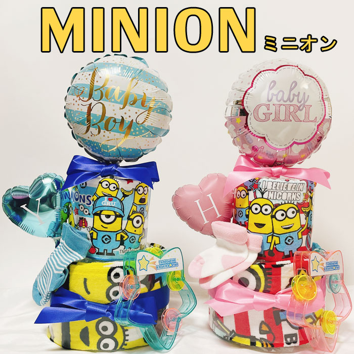 おむつケーキ ミニオン 男 女 出産祝い オムツケーキ 男の子 女の子 USJ 新生児 ギフト パンパース 誕生日 百日 ハーフバースデー 初誕生 手作り