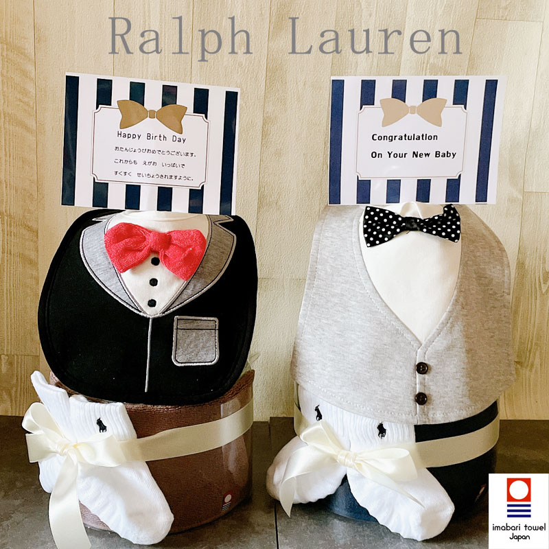 おむつケーキ おしゃれ 男の子 オムツケーキ 男 ラルフローレン 今治タオル タキシード 靴下 オーガニック 出産祝い フォーマル 誕生日 手作り RALPH LAUREN
