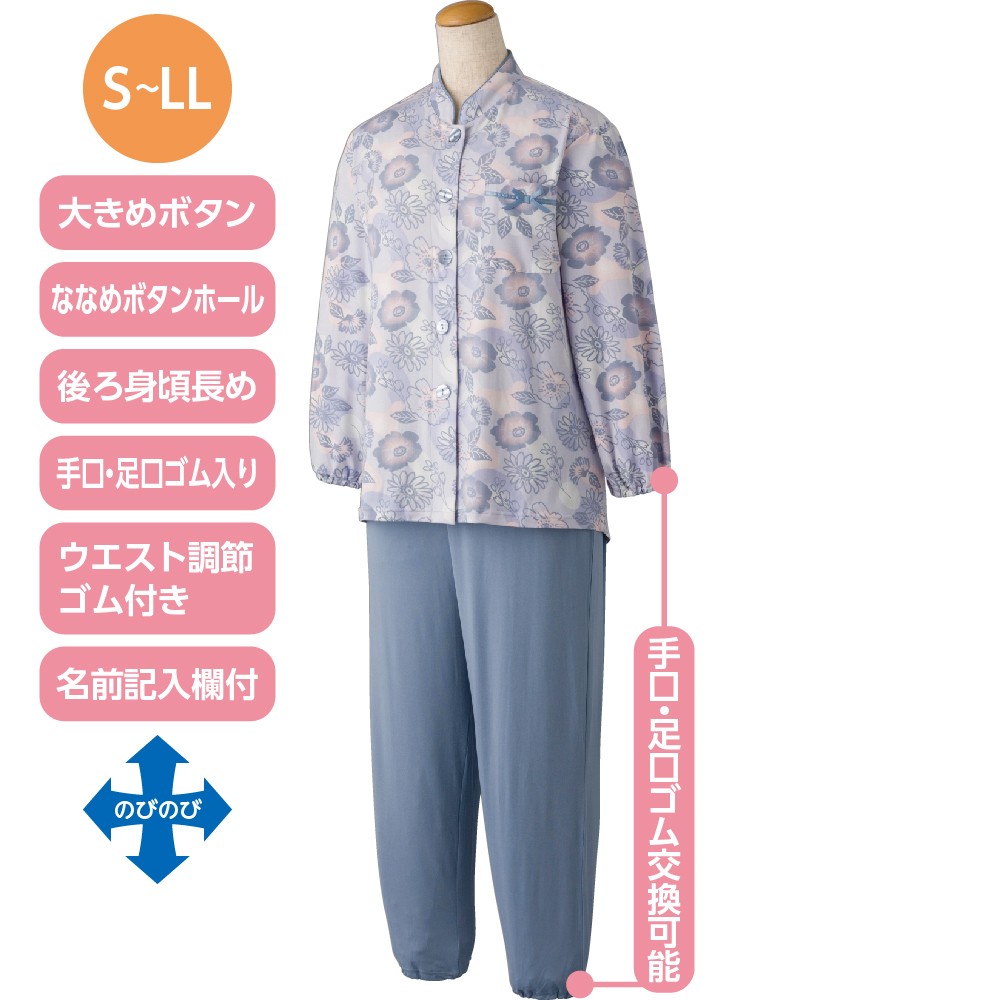 介護 大きめボタン プチサイズ のびのびストレッチ パジャマ シニア 婦人 ねまき レディース 高齢 通年 800456