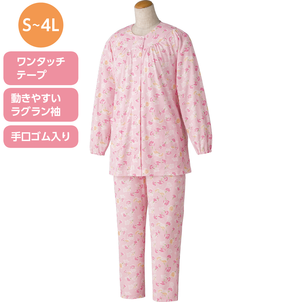 介護 パジャマ 婦人 ワンタッチテープ シニア 女性用 介護用パジャマ ラグラン袖 レディース オールシーズン 89266