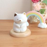 陶器製で、お顔の部分と、体部分とが分かれており、中に遺骨を納めることができるペット骨壺です。