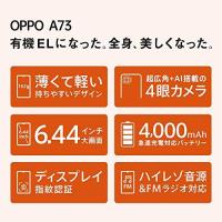 「商品情報」■薄型軽量の高級感溢れるデザインとカラーリング OPPO A73は、厚さ7.45mm、重さ162gの薄型軽量ボディで、両面2.5Dデザイン(アイソメトリックデザイン)を採用し、長時間のゲームや動画視聴でも持ちやすく手が疲れにくい設計になっています。 背面デザインは、レザーの様な質感で指紋の目立たないマット仕上げ、細かな凹凸を施しており、グリップ感を損ないません。カラーにはネービー ブルーとダイナミ ...「主な仕様」OPPO国内初eSIM・DSDV対