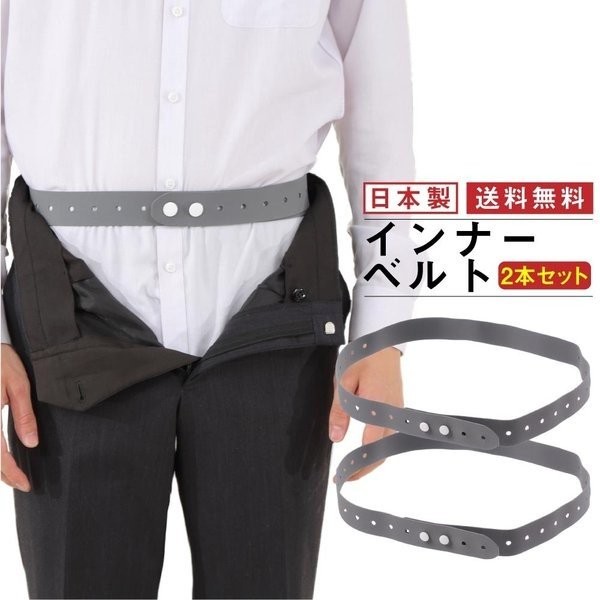 スポーツベルト 2本セット メール便送料無料 インナーベルト シャツずれ防止 ダブルボタン 日本製 身だしなみ