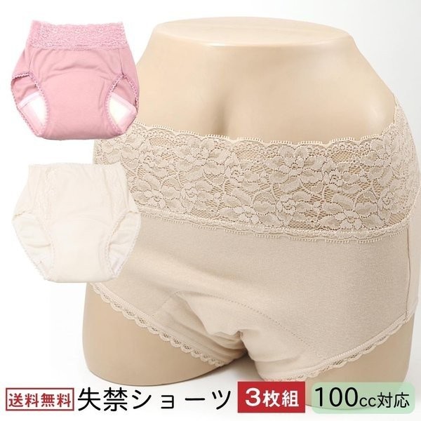失禁パンツ 尿漏れパンツ 3枚セット 女性用 あっ!ショーツ 下着 軽失禁 吸水 100cc対応 日本製 特許製品