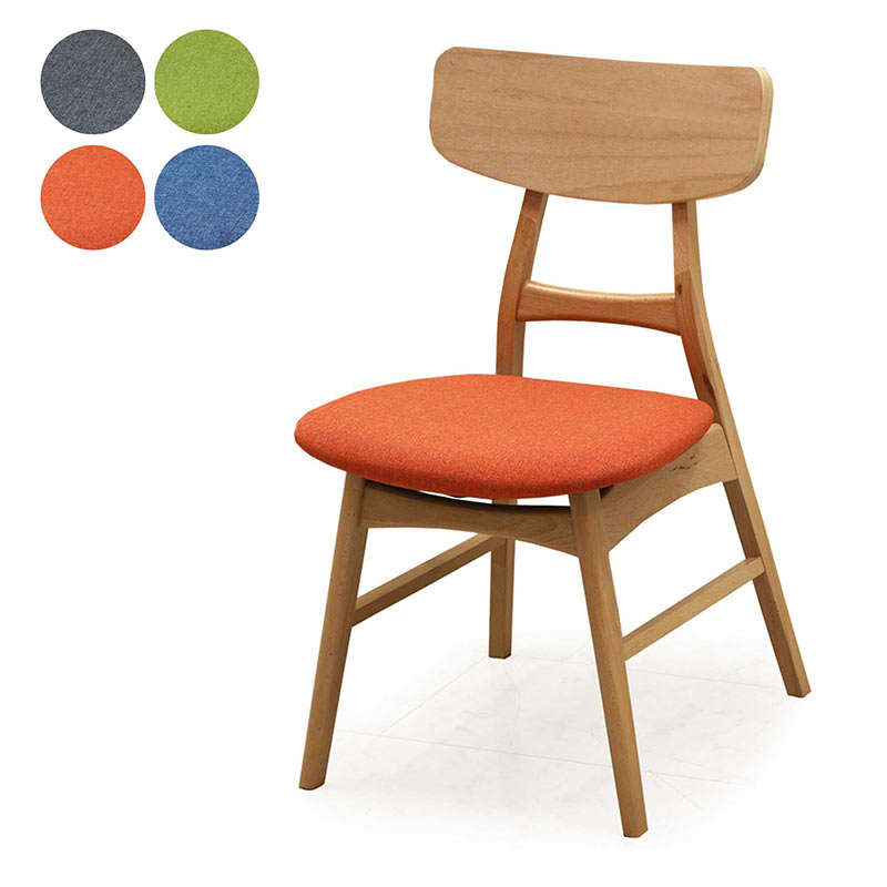 ビーチ材の美しい木目が特徴のダイニングチェアです。座面はカラフルな全4色。2脚1セットの販売で、1脚ごとに4色の中から選べます。