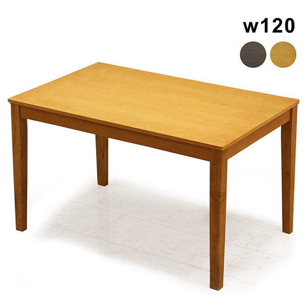 4人でゆったり使える幅120cmのダイニングテーブル。木の温もりを感じるモダンなデザインで、リビングやダイニングに自然と調和