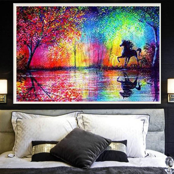 準上級 フル ダイヤモンドアート キット ビーズ刺繍 虹色の森 馬 レインボー モザイクアート パズルアート リハビリ 趣味 絵画 カラービーズ