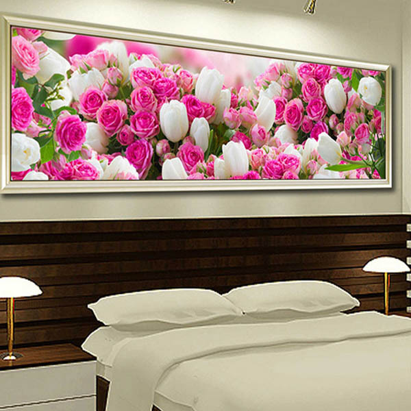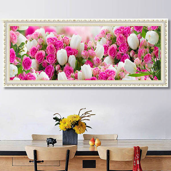 大型サイズ 上級者向け フル ダイヤモンドアート キット チューリップ ローズ 薔薇 花畑 ブーケ ピンクカラー ビーズ刺繍 モザイクアート パズルアート リハビリ