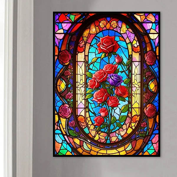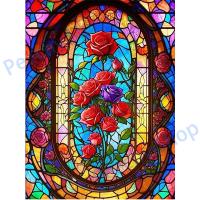 中級 フル ダイヤモンドアート キット ビーズ刺繍 ステンドグラス 薔薇 ローズ カラフル モザイクアート リハビリ 趣味 絵画 カラービーズ