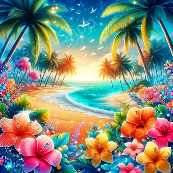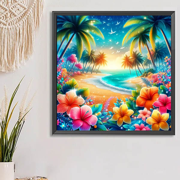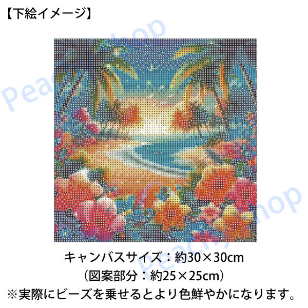 初級 フル ダイヤモンドアート キット ビーズ刺繍 ハワイアン 海辺 ハイビスカス モザイクアート リハビリ 趣味 絵画 カラービーズ ハンドメイド