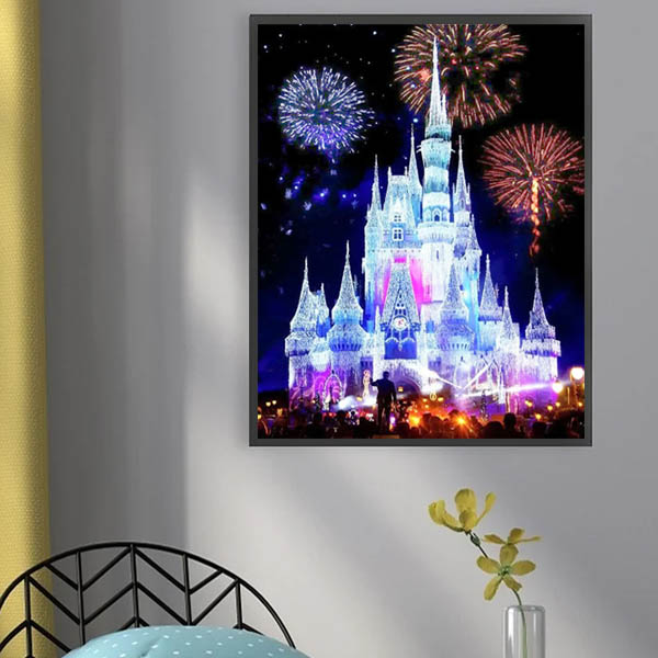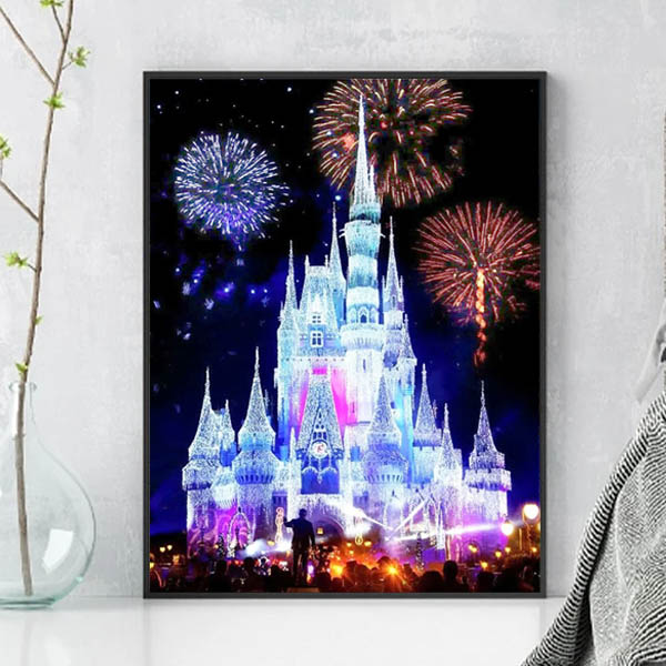 中級 フル ダイヤモンドアート キット ビーズ刺繍 花火 シンデレラ城 キラキラ 夜景 モザイクアート リハビリ 趣味 絵画 カラービーズ
