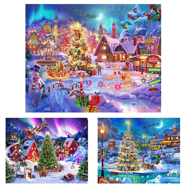 準上級 フル ダイヤモンドアート キット ビーズ刺繍 クリスマス 街 聖夜 サンタクロース モザイクアート パズルアート リハビリ 趣味 絵画 カラービーズ