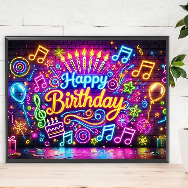 中級 フル ダイヤモンドアート キット ビーズ刺繍 ネオン ライト 誕生日 ハッピーバースデー モザイクアート リハビリ 趣味 絵画 カラービーズ