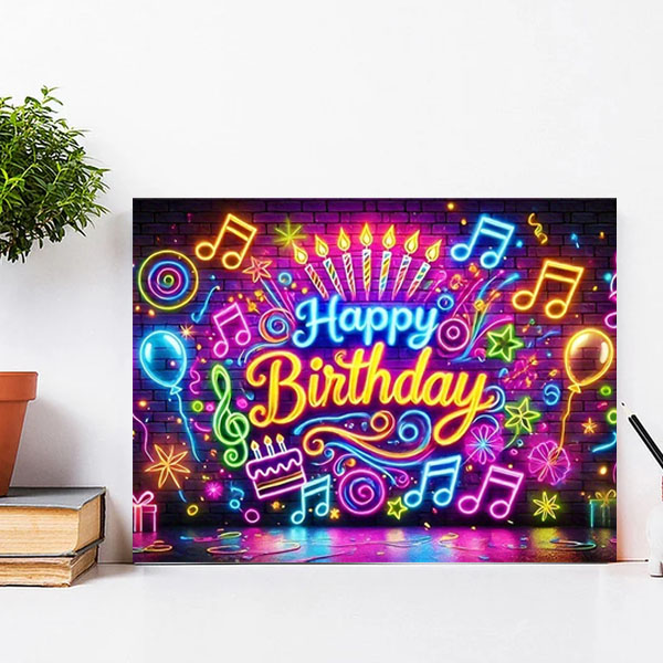 蛍光カラーのネオンでつくられた誕生日メッセージのデザインです。