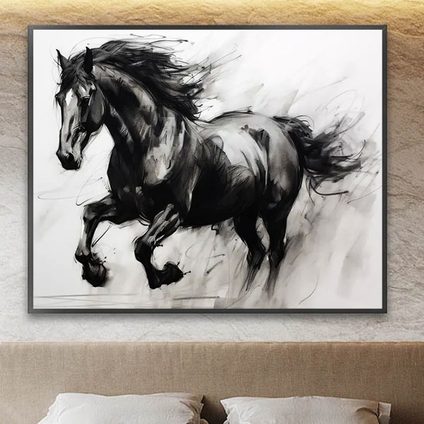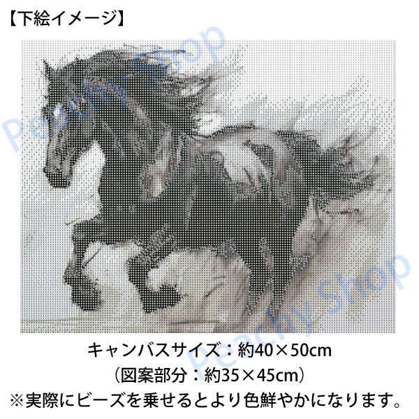 準上級 フル ダイヤモンドアート キット ビーズ刺繍 モノクロ 跳ねる馬 午年 水墨画 躍動感 モザイクアート パズルアート リハビリ 趣味 絵画 カラービーズ