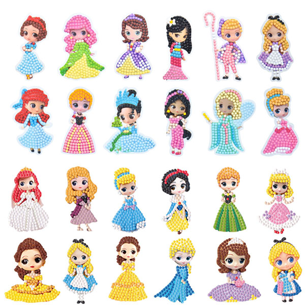 シールタイプ セット ダイヤモンドアート キット 12個入り ドーリー おとぎ話 プリンセス 女の子 お姫様 ビーズ刺繍 モザイクアート リハビリ 趣味 カラービーズ