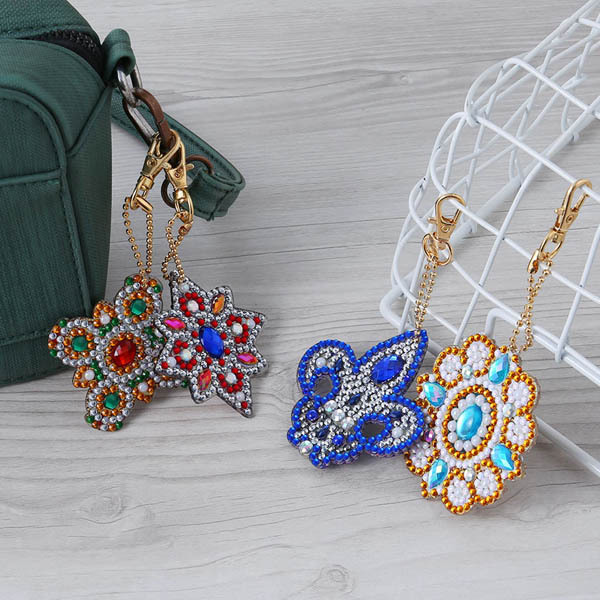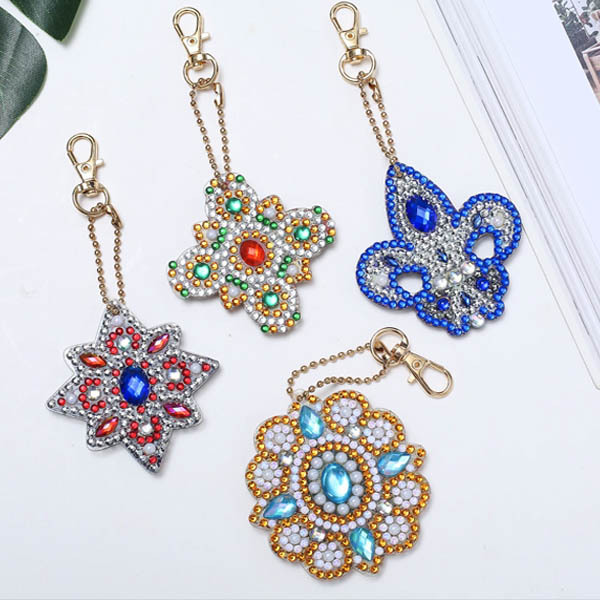 キーホルダー 制作キット ダイヤモンドアート ラインストーン マンダラ模様 曼荼羅 モチーフ ビーズ刺繍 モザイクアート リハビリ 趣味 絵画 カラービーズ