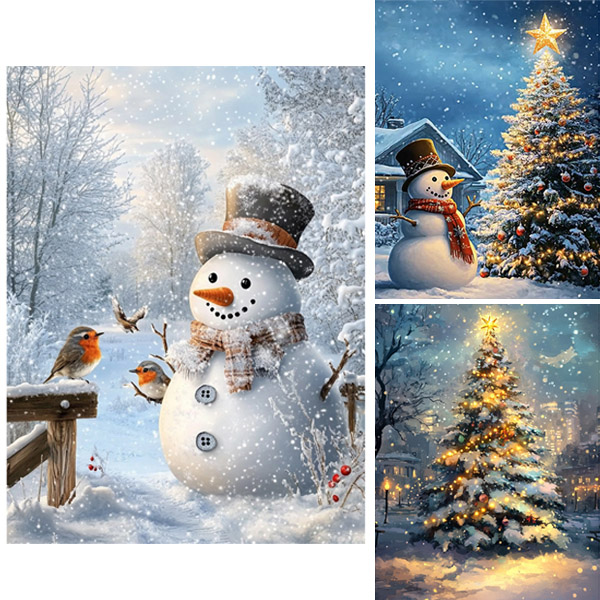 中級 フル ダイヤモンドアート キット ビーズ刺繍 クリスマス 雪だるま ツリー 水彩画風 モザイクアート リハビリ 趣味 絵画 カラービーズ