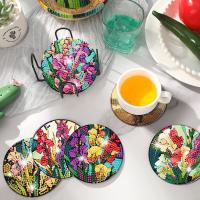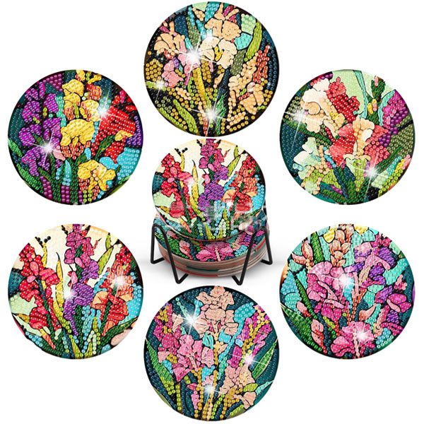 コースター 制作キット ダイヤモンドアート 6枚 ホウセンカ あやめ 花束 ブーケ フラワー ホルダー付き モザイクアート リハビリ 趣味 絵画 ラインストーン