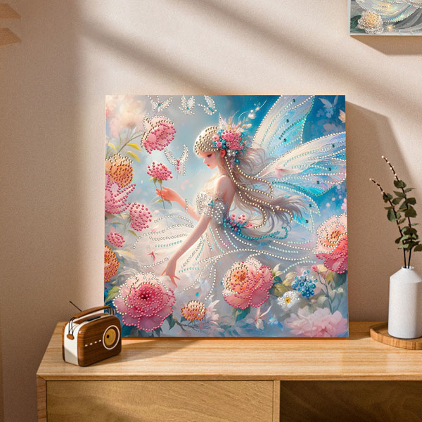 内フレーム付き ラインストーンビーズ ハーフ ダイヤモンドアート 刺繍キット 妖精 フェアリー プリンセス パズルアート リハビリ 趣味 絵画