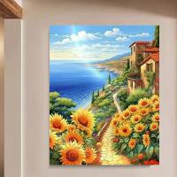 内フレーム付き ダイヤモンドアート 40×50cm 刺繍キット 海沿い ひまわり 花畑 街並み パズルアート リハビリ 趣味 絵画 モザイクアート