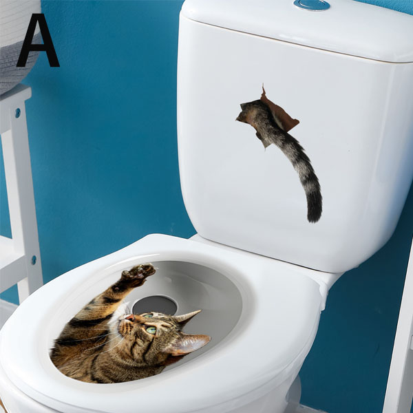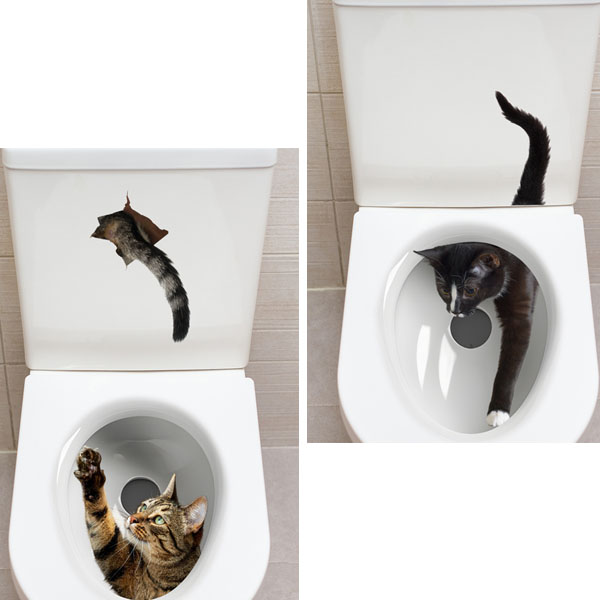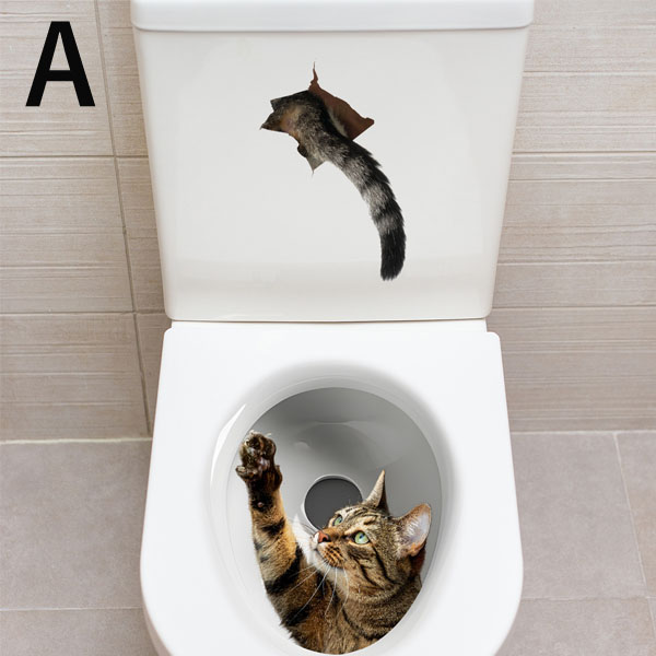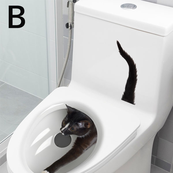 トイレ用 ネコ 猫 しっぽ いたずらネコ だまし絵ステッカー 便器のふた シール トリックアート ウォールステッカー DIY